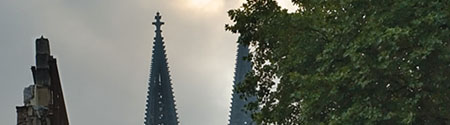 Over de Photokina schrijf ik misschien later nog wel wat. Op mijn wandelingetje 's morgen vanuit het hotel naar de Dom, was het mistig. Ik liep eerst de verkeerde kant op, ik dacht te kunnen vertrouwen op de aanwijzingen van de mevrouw van het hotel. Niet, daardoor kwam ik nog bijna in tijdnood. De bus naar de beurs vertrok over drie kwartier. Maar in de zwembadpas snelde ik naar de Dom, bekeek hem ook nog even van binnen en maakte ook nog wat foto's. Hieronder nog een impressie van de Dom: