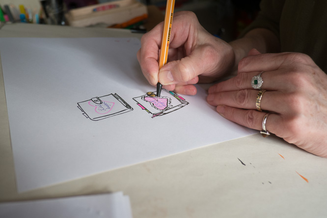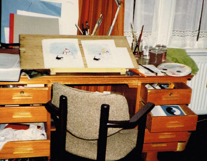 I applied for a place at the Rietveld Academie in Amsterdam and graduated from the Illustration Department in 1983. In our graduation year Gitte Spee, Gertie Jaquet, Alex de Wolf, Annemarie van Haeringen and I - wanting to continue working together - launched The Illustration Studio. In 1988 I left the Illustration studio when my daughter Lisa was born and continued illustrating from home.