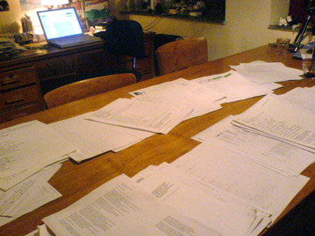 Nu zijn ze allemaal gesorteerd, op alfabet, en in twee multomappen gestopt. Door Mrs.Fredlee, die de dwarrelstapels al lang een doorn in het oog was, voornamelijk omdat ik nooit het liedje kon vinden wat ik op dat moment wilde spelen. Het was een enorme klus en voor een deel ook nog sentimental journey. De liedjes waren soms geprint op achterkanten van geprinte e-mails, ze zaten vol wijn- en etensvlekken, tekeningen van de kids en onduidelijke telefoonnummers.