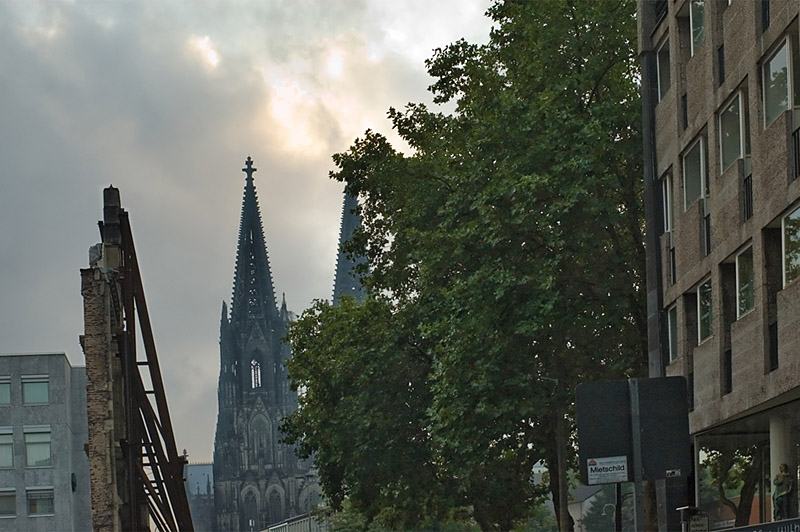 Over de Photokina schrijf ik misschien later nog wel wat. Op mijn wandelingetje 's morgen vanuit het hotel naar de Dom, was het mistig. Ik liep eerst de verkeerde kant op, ik dacht te kunnen vertrouwen op de aanwijzingen van de mevrouw van het hotel. Niet, daardoor kwam ik nog bijna in tijdnood. De bus naar de beurs vertrok over drie kwartier. Maar in de zwembadpas snelde ik naar de Dom, bekeek hem ook nog even van binnen en maakte ook nog wat foto's. Hieronder nog een impressie van de Dom: