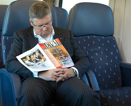 Trein, 1ste klasse, tussen Utrecht en Amsterdam.