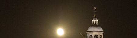 Volgens Rufus ben ik qua tekst op dit moment niet geïnsprireerd. Wie zal het zeggen. Nu ja, hij in ieder geval. Vanavond zwermde de maan weer rond de Oosterkerk. Dit is het moment waarop hij net opkwam.