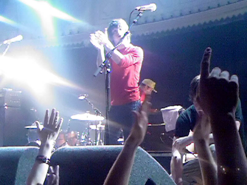 Omdat Mrs.Fredlee nog grieperig was, ging ik afgelopen zondag met Lisa naar de Arctic Monkeys. Om geen last te krijgen met de security had ik mijn camera onderin een linnen tasje gestopt met daarboven op mijn jasje. So far so good dacht ik, totdat ik misgreep bij een van hengsels van het tasje en de camera op de straatstenen kletterde. Vandaar dat u boven dit verhaal wat een opname aantreft met mijn mobiel en hier een met die van Lisa.