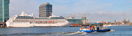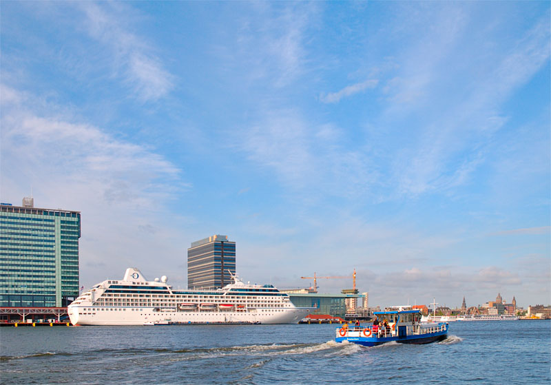 Gisterenmorgen om half zeven op, om me omstreeks zeven uur naar het IJ te begeven waar de MS Regatta - een cruiseschip - gefotografeerd moest worden. Voor de Gafpa, dat spreekt. Het schip zou omstreeks acht uur aankomen, dus als ik om half acht aan de overkant-van-het-IJ zou zijn dan kon ik de aankomst in volle glorie vastleggen. Bovendien scheen de zon, het licht kwam van de goede kant, niets stond een gunstige Gafpa-exercitie in weg. Dat ik moest lopen omdat een fiets met handremmen niet geschikt is voor iemand met zijn hand in het gips, was een vertragende factor, maar het weer was goed en wat is er mis met een prettige wandeling?