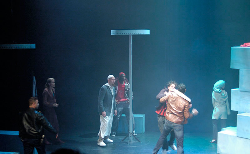 Afgelopen zaterdag zagen we Vuur van theatergroep de Nieuwe Amsterdam. Het stuk was gebaseerd op een idee van Jack Druppers, de buurtregisseur van bureau raampoort. Het stuk gaat over twee Marokkaanse broers, waarvan er een politieagent is en de ander de buurt onveilig maakt. Na de dood van Theo van Gogh weet de agent niet meer aan wie hij loyaal moet zijn: zijn broer of zijn baan.