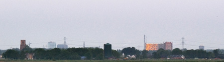 Rechts ligt een uitlopertje van Monnickendam, gefotografeerd op een van de tochtjes door Waterland. Daarachter strekt zich Waterland uit, met haar vogels, rust en plassen. Achter die bossages bij Monnickendam wil de gemeente Waterland de industrie die zich nu binnen Monnickendam bevindt gaan verplaatsen, in zogenaamde ‘bedrijfskorrels’ een eufemistisch woord voor industrieterreintjes vermomd in het groen.