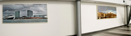 In de Passenger Terminal Amsterdam hangen inmiddels vier nageschilderde panorama's in de grote hal. U ziet er hier twee.