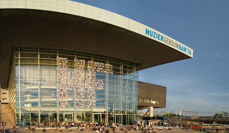 Gisterenavond bij het Muziekgebouw aan 't IJ. Lekker met een wijntje. Mrs.Fredlee past op mijn rode wijn. Kunt u haar vinden?