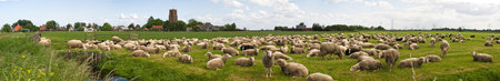 Al vrij in het begin van de wandeling zagen we in de verte de opgehoopte 'zandzakken' liggen en vroegen ons af of dat schapen waren of zakken hooi! En dan van boven uit de stompetoren - met zijn prachtige panorama van Waterland - zagen we weer de kleine beige stipjes beneden in de verte! Toen we later door het picturesque dorpje Ransdorp waren - en de gezellige Zwaan cafe/hotel met toilet toch links hebben laten liggen!! - liepen we verder weer op de fiets/ruiter/wandelpad richting auto, en daar lagen de bundles 'zandzakken' weer maar JA HOOR! Ze waren toch schapen! En wat een vrolijke bijeenkomst van mekkerende bijna zingende lieve bioschaapjes!! "Goedemiddag dames!...” "Bah bieberdee boe boe biobah.....Bah bah black sheep have you any wool, yes sir yes sir three bags full. One for the master one for the dame and one for the little lass who lives down the lane!”