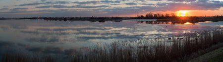 Gisteren was het water vlak en weerspiegelde de lucht bijna één op één in dat water. Toen ik de Schellingwouderbrug over reed, zag ik vanuit mijn ooghoek het water van het IJ-meer glad en blauw, als een koude blauw lucht weerspiegeld in het water. Langs beide kanten van de Durgerdammerdijk was het water glad en blauw, en vooral in het water van het Kinselmeer spiegelden zich de wolken, alsof ze wilden zeggen: kijk ons eens! Ik klikte er op los. Hoe legde ik dit vast? Een zonsondergang, met veel drama, dat is op zich niet heel moeilijk. Het dramalicht doet zijn werk uit zichzelf. Een beetje goed belichten en je hebt wel een mooi beeld. Drama zelfs.