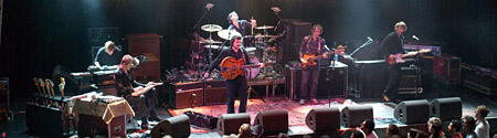Gisterenavond speelde Bright Eyes in Paradiso. Het voorprogramma was The Faint, waar we nog nooit van gehoord hadden. We kwamen na het begin binnen en hoorden een enthousiaste zaal. We kenden geen enkel nummer, maar de muziek greep je meteen. Fantastisch voorprogramma. De muzikanten van The Faint kwamen later voor een deel terug bij Bright Eyes.
